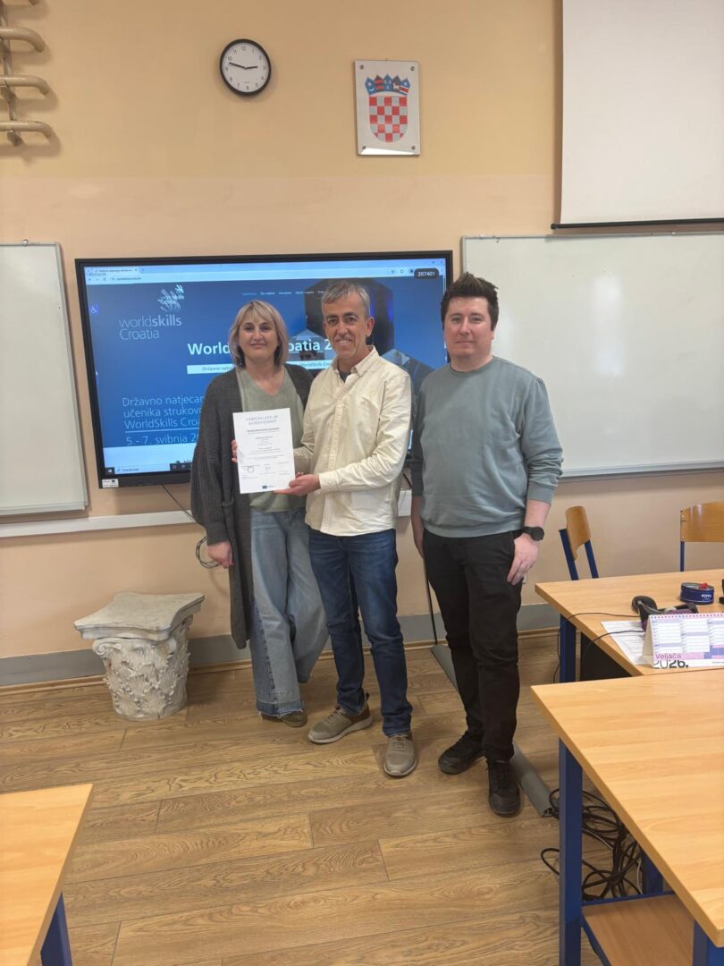 Tijekom aktivnosti praćenja rada (job shadowing), kolega Ignacio upoznao je našu školu, njezina područja djelovanja te obrazovni sustav u Hrvatskoj. Poseban naglasak bio je na usporedbi kurikuluma u području građevine, osobito u kontekstu uvođenja modularne nastave, pri čemu su prepoznate brojne mogućnosti buduće suradnje.